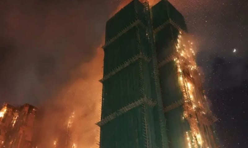 İtfaiye ekiplerinin yangına müdahalesi sürerken, olay yerinden gelen görüntüler yangının vahametini ortaya koydu. Görüntülerde, itfaiye ekiplerinin, dış cephesi bambu iskelesiyle kaplı olan ve alevler içinde kalan dairelere müdahale ettiği görüldü.