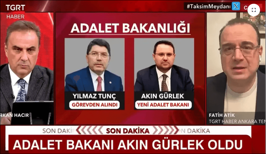 TGRT Haber Ankara Temsilcisi Fatih Atik, Kabine değişikliği hakkında çarpıcı değerlendirmelerde bulundu. Taksim Meydanı programında konuşan Fatih Atik şu ifadeleri kullandı: