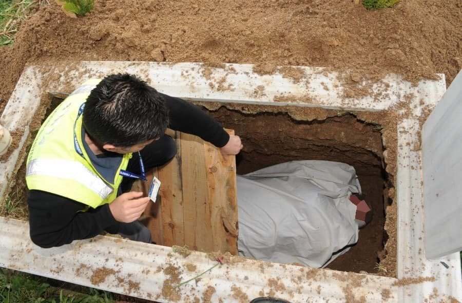 Deniz yolculuğunda ölen kimsenin, karaya götürülmesi imkânı bulunmadığı takdirde batması sağlanacak şekilde denize bırakılması câizdir; bu işlem onun hakkında defin sayılır. Ancak imkân olduğu ölçüde cenazenin karada toprağa verilmesi teşvik edilmiştir. Büyük olsun küçük olsun, ölen kimsenin öldüğü yere değil mezarlığa gömülmesi gerekir. Öldüğü yere gömülmenin sadece peygamberlere mahsus olduğu belirtildiği gibi (İbn Âbidîn, I, 600) mezarlığın ziyaretçiler için ibret vesilesi olacağı, ölüler için de hayır ve rahmetle anılmaya sebep teşkil edeceği ifade edilmiştir. Cenazenin gece gömülmesi de mümkün olmakla birlikte gündüz defnedilmesi teşvik edilmiştir. Definde aslolan bir kabre bir kişinin gömülmesidir. Ancak ihtiyaç duyulduğunda, aralarına toprak konarak birden fazla kimse de bir kabre gömülebilir. Önceden ölü gömülmüş kabre kemikleri çürümüşse tekrar defin yapılabilir. Henüz çürümemiş kemikler varsa onlar da yeni cenaze ile birlikte ve araları toprakla ayrılarak gömülür. Bu kemiklerin başka yere götürülmesi doğru olmaz. Defnedilen cenazenin daha sonra alınıp başka yere nakli de ancak bazı mezheplerce ve belli şartlarda câiz görülmüştür.